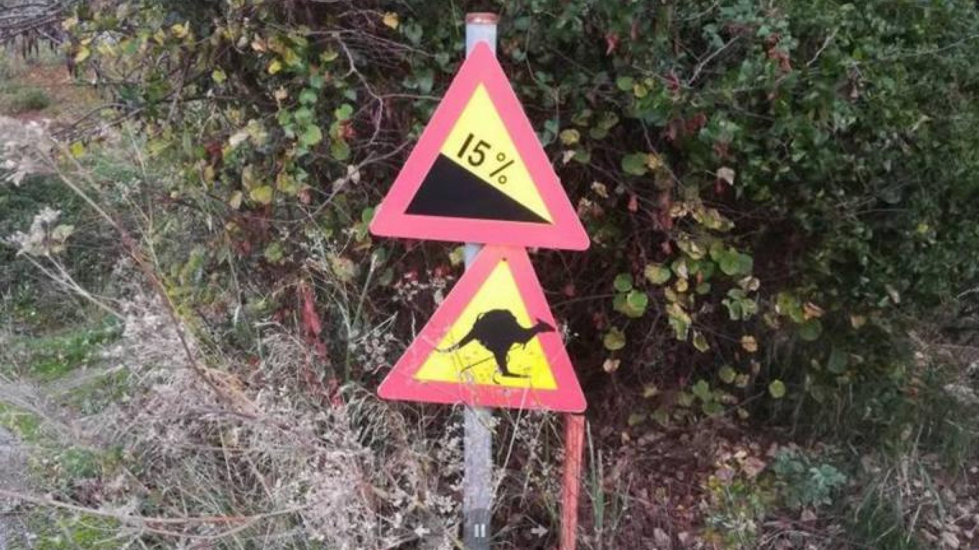 Στο πρώτο σήμα υπάρχει προειδοποίηση για… διελεύσεις καμηλών και στη δεύτερη, για καγκουρό!
