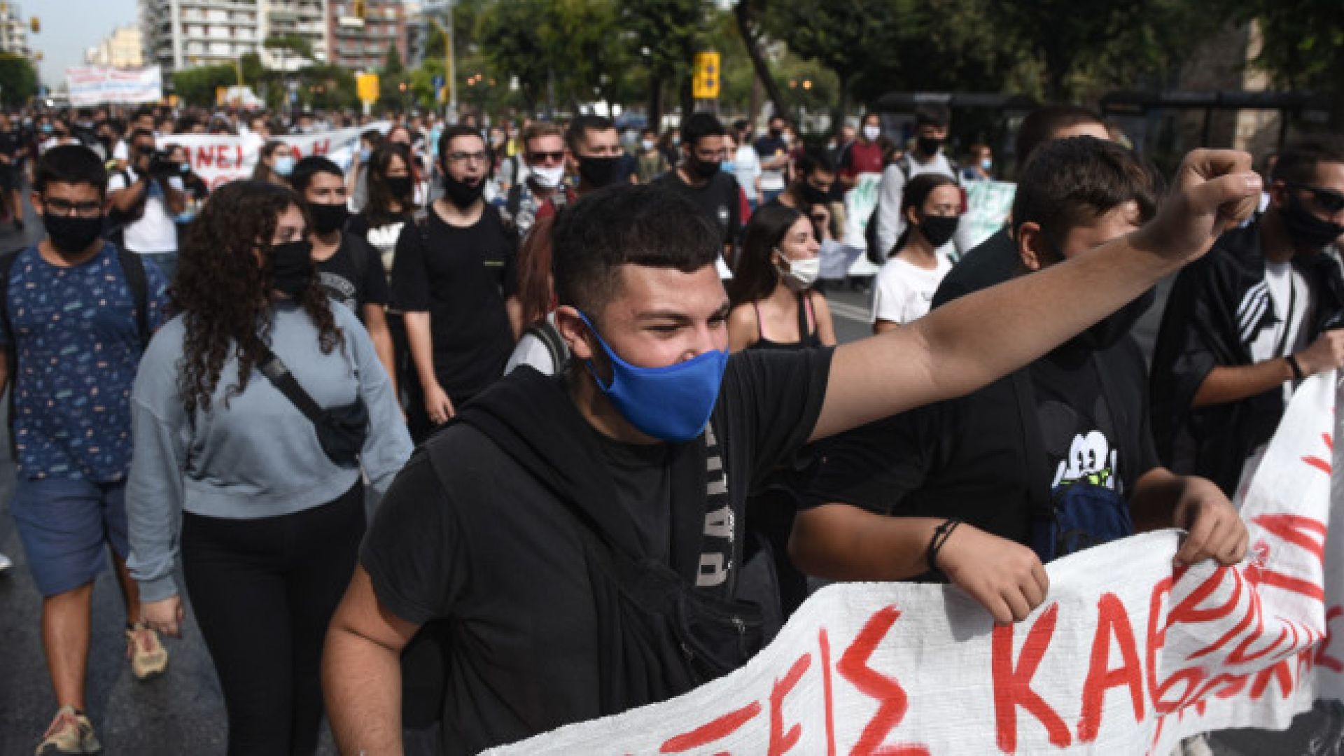 Πορεία διαμαρτυρίας πραγματοποιήθηκε το πρωί στη Θεσσαλονίκη με μαθητές της πόλης να διαμαρτύρονται για τα προβλήματα που αντιμετωπίζουν στα σχολεία τους εν μέσω της πανδημίας του κορωνοϊού.
