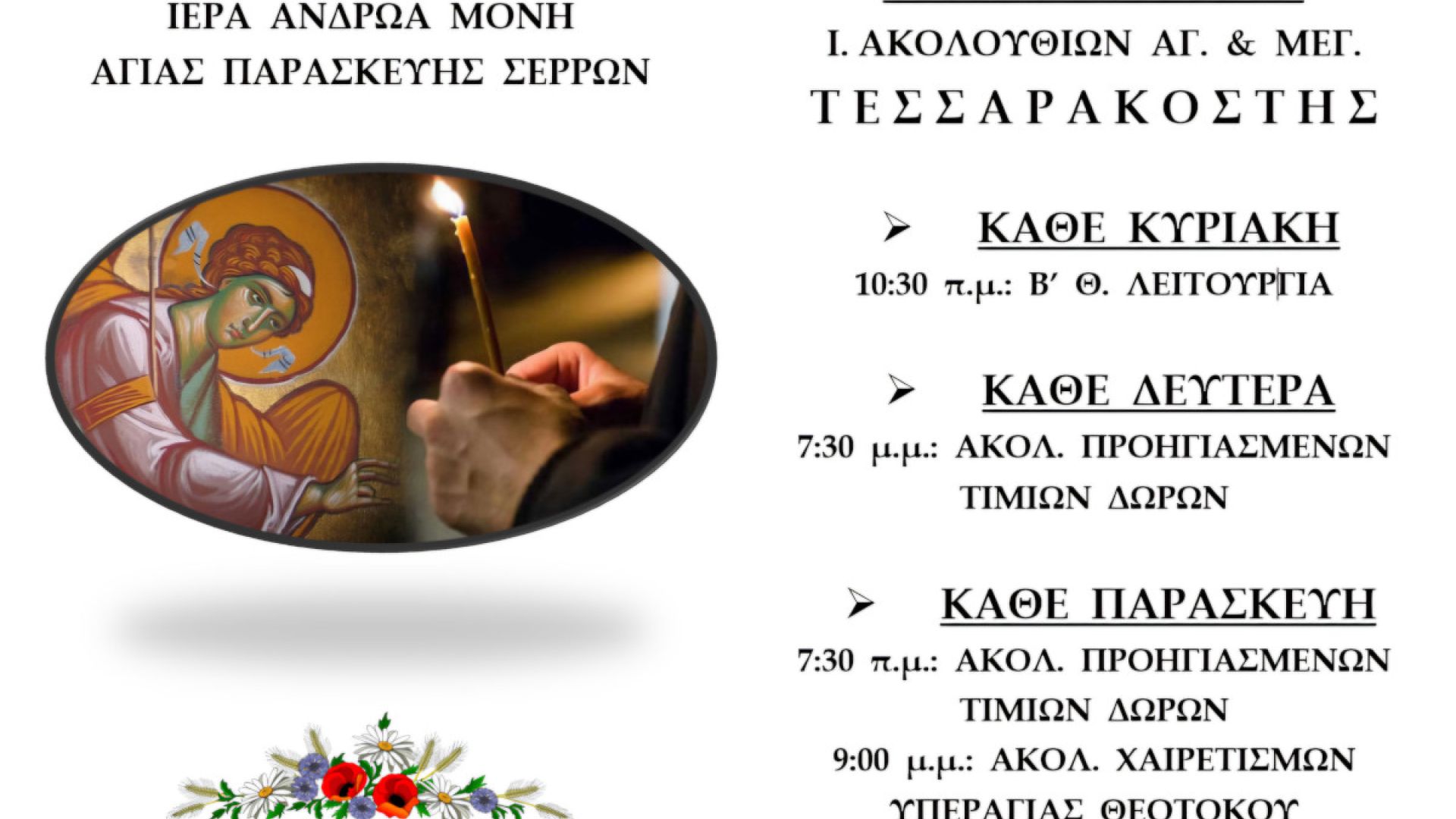 Πρόγραμμα Ιεράς ανδρώας μονής Αγίας Παρασκευής Σερρών