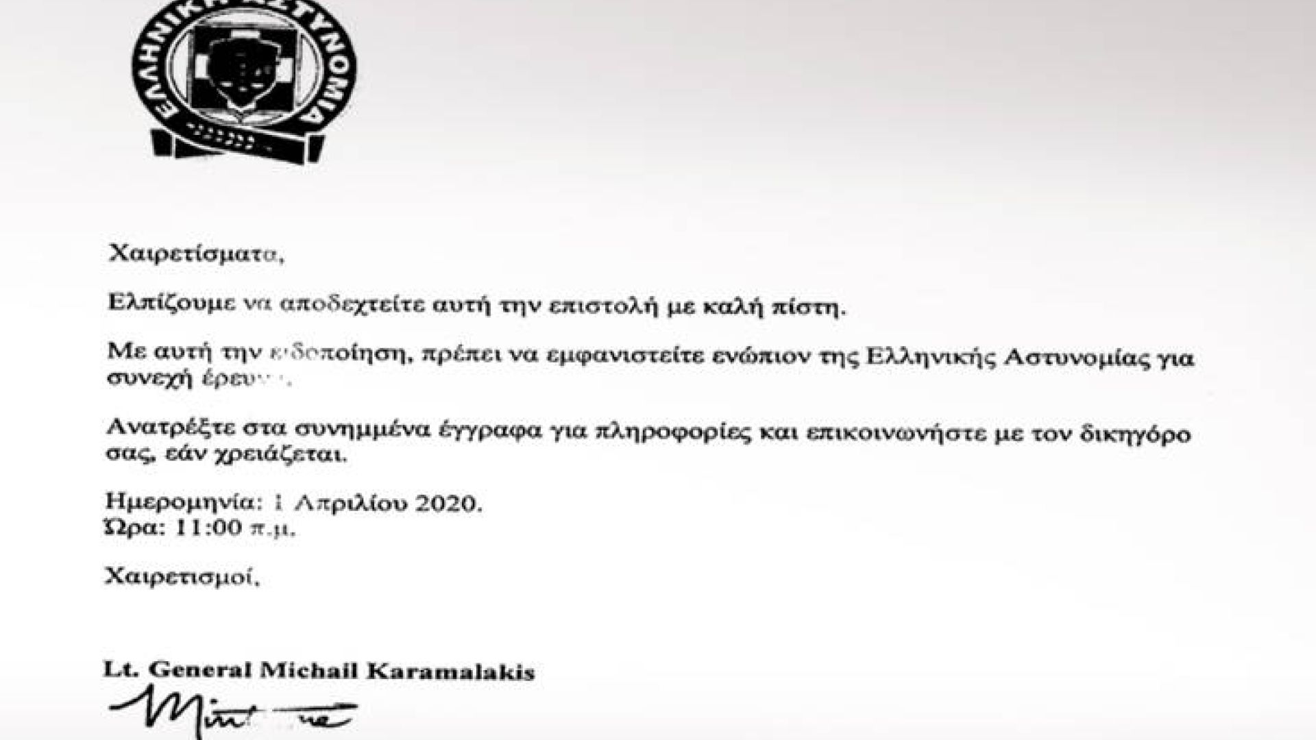Ένα κείμενο – μήνυμα, που αναπαράγεται μέσω ηλεκτρονικού ταχυδρομείου (e-mails), ως δήθεν επιστολή της Ελληνικής Αστυνομίας, δίνει στη δημοσιότητα η ΕΛΑΣ, τονίζοντας πως «είναι καταφανώς ψευδεπίγραφο και απατηλό και διακινείται από δράστες που επιχειρούν προφανώς να εξαπατήσουν – παραπλανήσουν τους πολίτες».