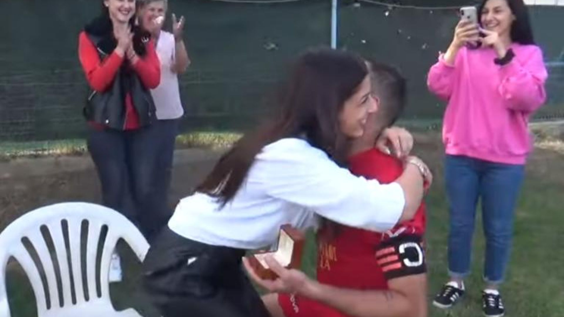 Στο τοπικό παιχνίδι της ΠΑΕ Ποντίων Κατερίνης με τον Αχιλλέα Νεοκαισάρειας, την παράσταση έκλεψε μία πρόταση γάμου που… συνέδεσε τις δύο ομάδες για πάντα.