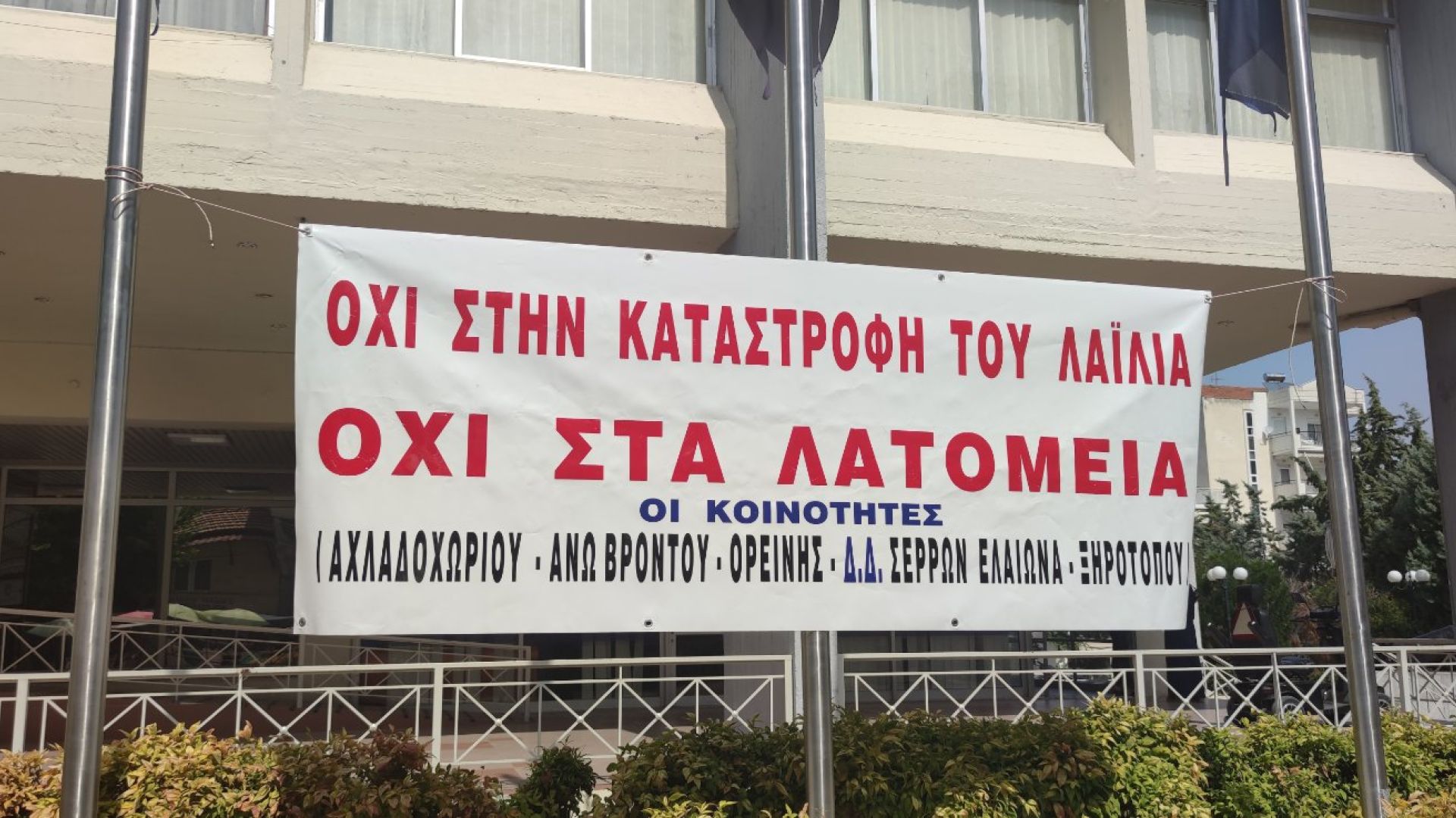 «Όχι στη λειτουργία λατομείου στον Λαϊλιά» βροντοφώναξαν κάτοικοι του Αχλαδοχωρίου στην κινητοποίηση που πραγματοποίησαν στις 12.00 το μεσημέρι της Πέμπτης 5 Αυγούστου έξω από το Δημαρχιακό Μέγαρο στο Σιδηρόκαστρο. Μία κινητοποίηση που πραγματοποιήθηκε με αφορμή την ανακοίνωση-πρόσκληση του Περιφερειακού Συμβουλίου Κεντρικής Μακεδονίας για δημόσια διαβούλευση του Έργου “Διαβίβαση για γνωμοδότηση Μελέτης για Απόφαση Έγκρισης Περιβαλλοντικών Όρων Λατομείου Γρανίτη, σε δημόσια δασική έκταση, εμβαδού 99.935,00 τ.μ., εντός NATURA 2000 «Όρη Βροντούς – Λαϊλιάς” GR126007, στη θέση “Χέρσο” της Τ.Κ. Αχλαδοχωρίου της Δ.Ε Αχλαδοχωρίου, του Δήμου Σιντικής, Π.Ε. Σερρών με ΠΕΤ 2106556828».