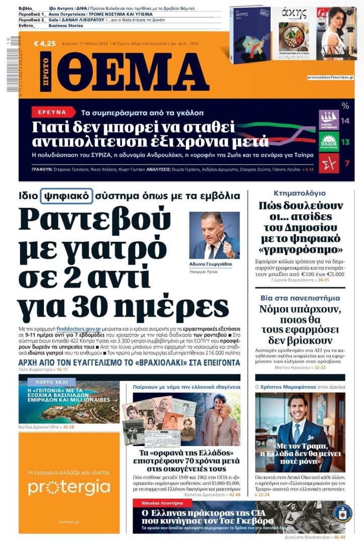 Ο Υπουργός υγείας με μια ανάρτηση του το πρωί της Κυριακής στην πλατφόρμα X κάνει αναφορά στο πρωτοσέλιδο της Εφημερίδας «Πρώτο ΘΕΜΑ» που κάνει λόγο για την νέα πλατφόρμα του υπουργείου Υγείας με την οποία το ραντεβού με γιατρό θα κλείνεται σε 2 αντί για 30 ημέρες.