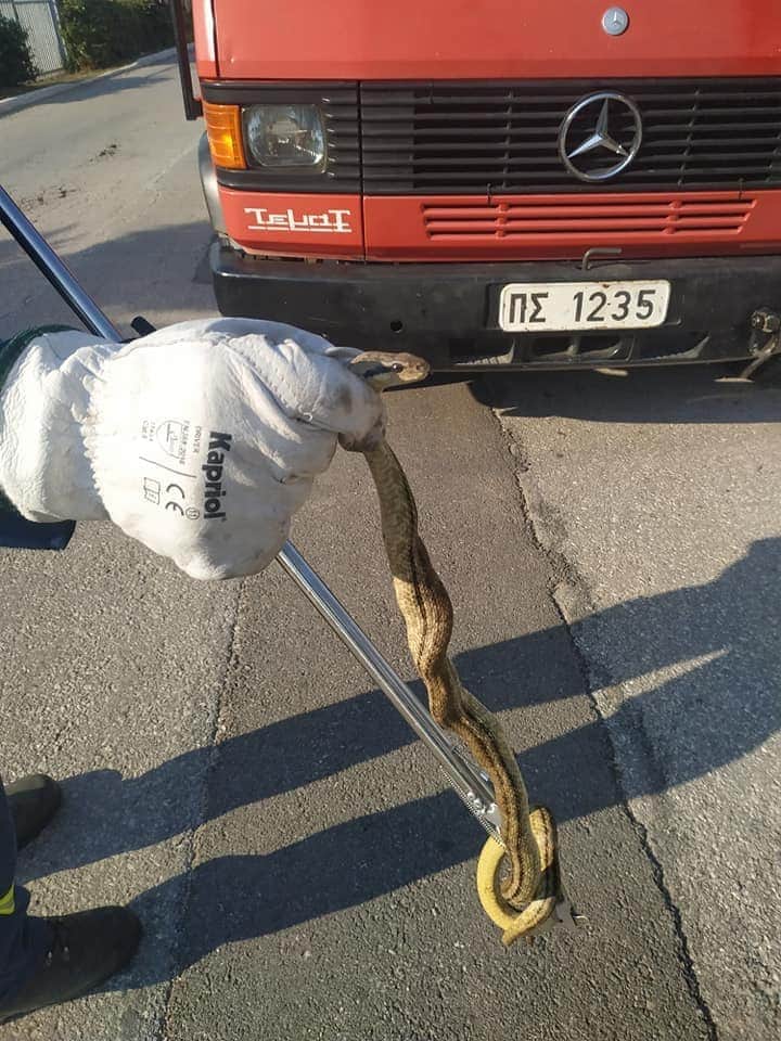 Το περιστατικό σημειώθηκε την Πέμπτη 23 Ιουλίου και το φίδι μεταφέρθηκε με ασφάλεια και απελευθερώθηκε σε ακατοίκητη περιοχή του Παγγαίου.