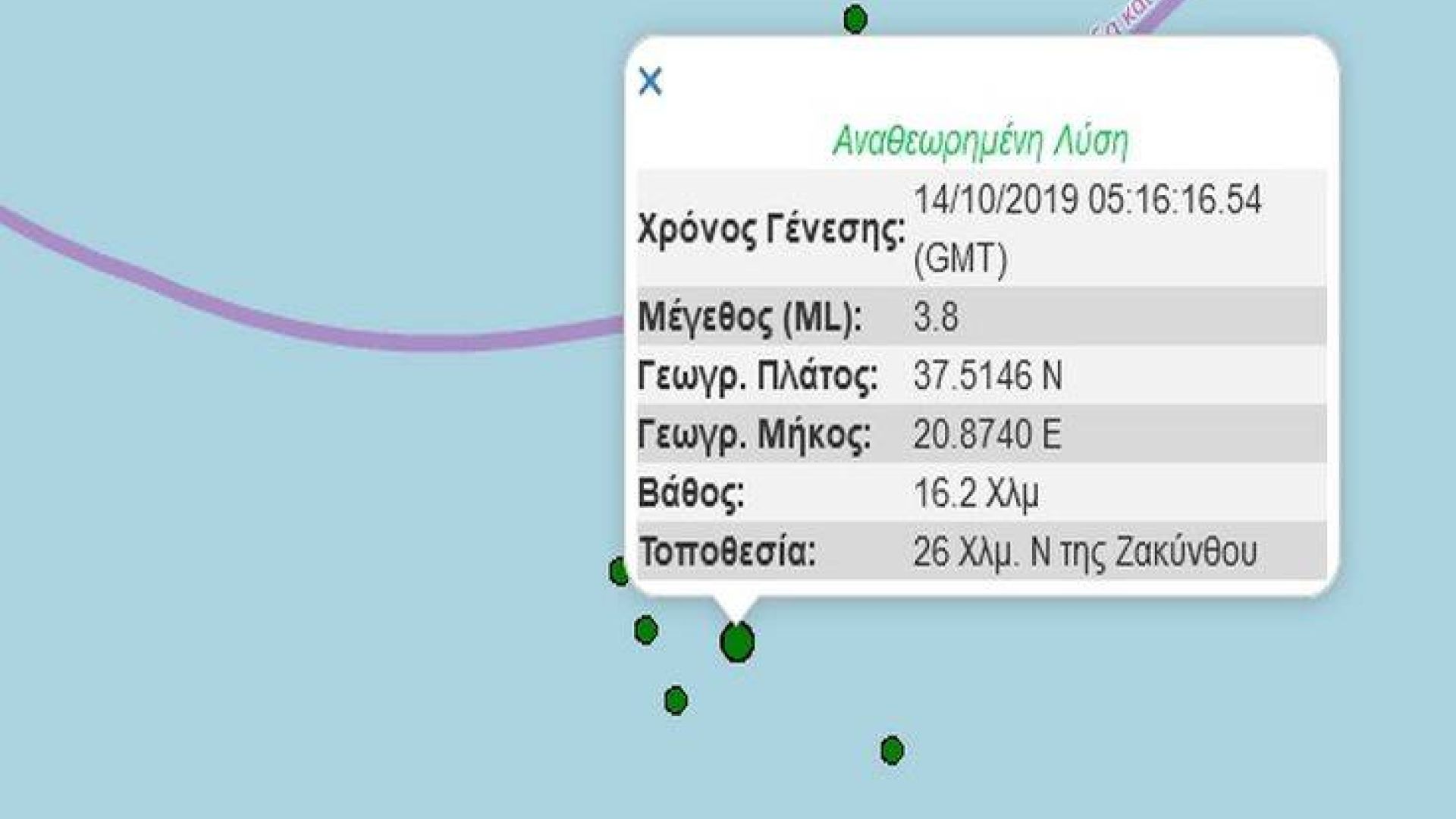 Σεισμική δόνηση σημειώθηκε πριν λίγο 26 χιλιόμετρα νότια της Ζακύνθου σύμφωνα με το Γεωδυναμικό Ινστιτούτο.