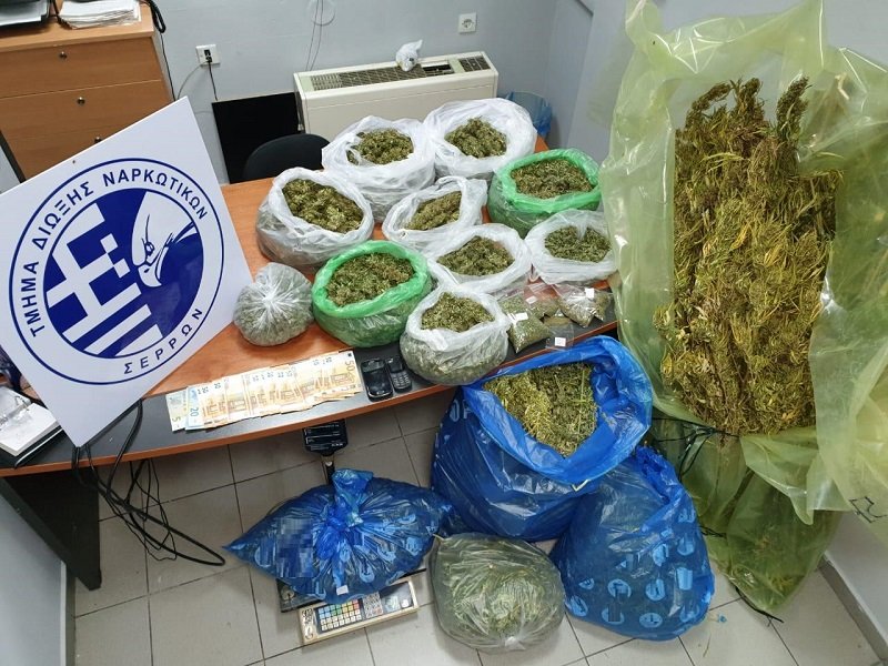 Ειδικότερα, εντοπίσθηκαν σε περιοχή της Σιντικής των Σερρών και σε έρευνες που πραγματοποιήθηκαν στις οικίες τους, με την συνδρομή αστυνομικού σκύλου ανίχνευσης ναρκωτικών της Διεύθυνσης Αστυνομίας Σερρών, βρέθηκαν και κατασχέθηκαν ποσότητες κάνναβης και συγκεκριμένα: