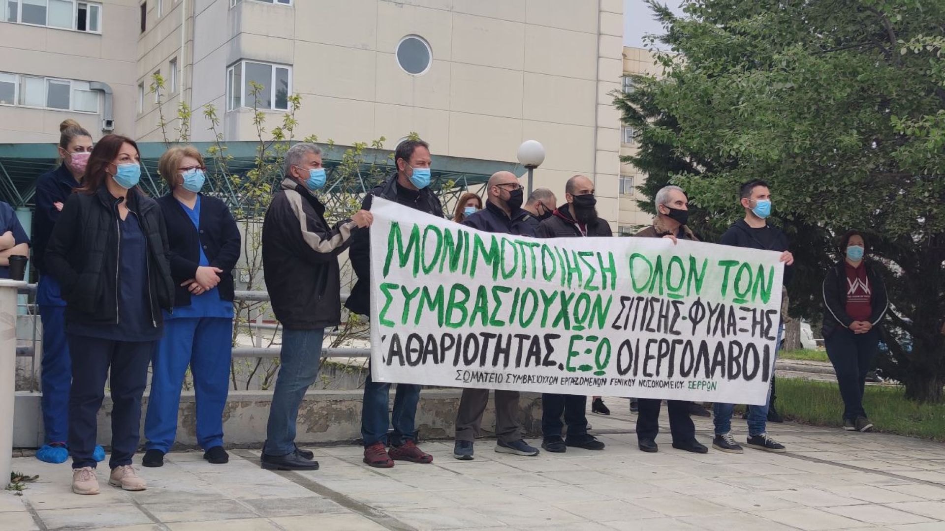 Στο γενικό  νοσοκομείο Σερρών η διαμαρτυρία πραγματοποιήθηκε στην είσοδο των τακτικών ιατρείων , με γιατρούς και νοσηλευτές να ζητούν την θωράκιση του νοσοκομείου εν όψει του τρίτου κύματος πανδημίας.