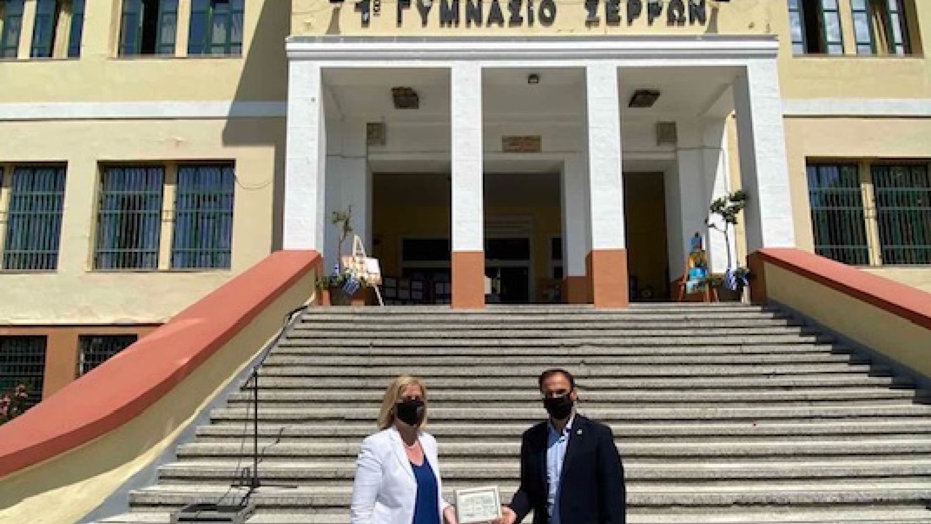 Από την πλευρά της η Διευθύντρια του 1ου Γυμνασίου Σερρών Σύλια Ζέττα τόνισε: «Είναι μεγάλη τιμή να σας υποδέχομαι σε ένα σχολείο που αποτελεί φάρο για τις Σέρρες.