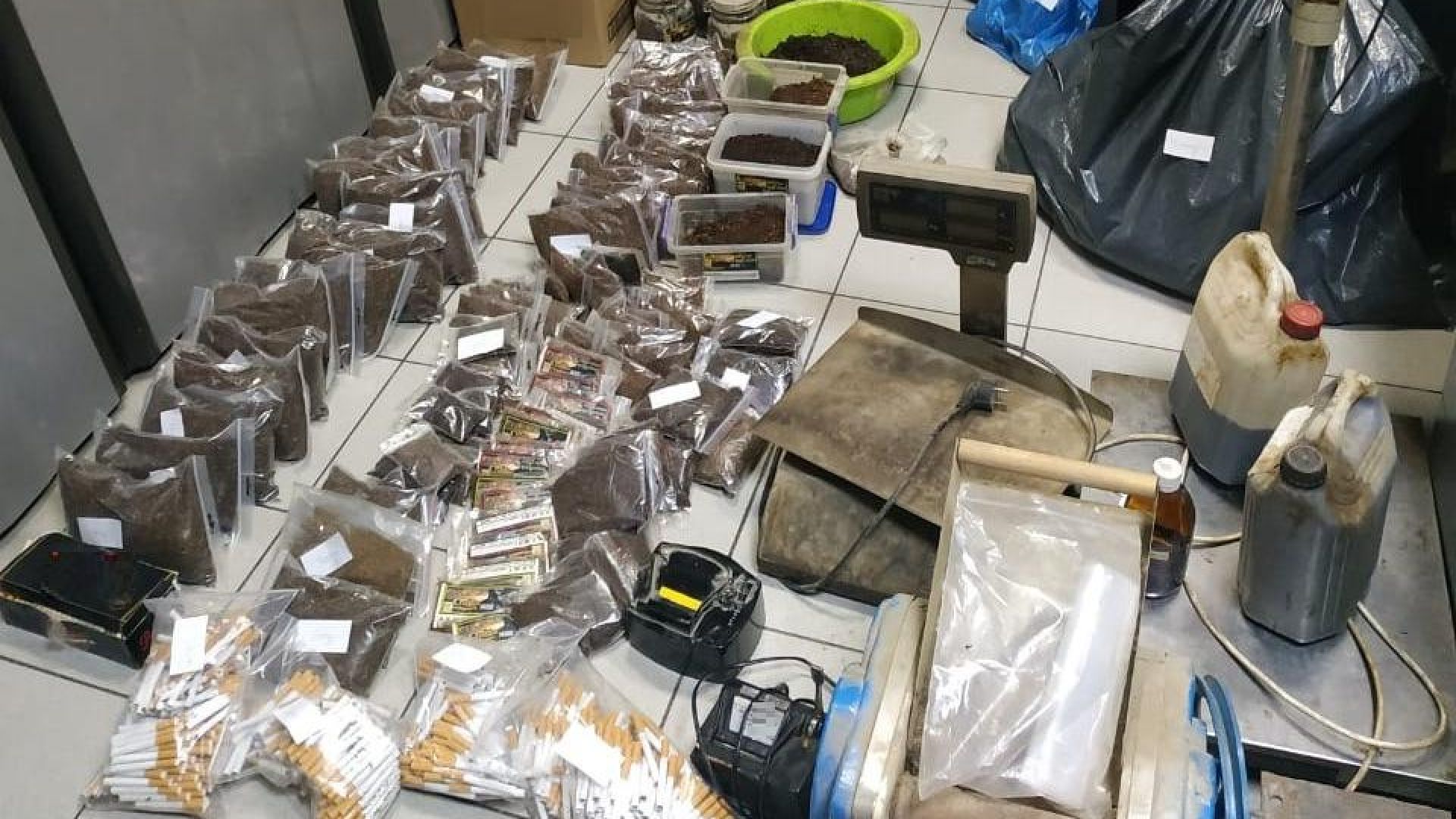 Σε έρευνα που διενεργήθηκε στην οικία του ημεδαπού, εντοπίστηκε, ένας ειδικά διαμορφωμένος χώρος, όπου πραγματοποιούνταν επεξεργασία λαθραίου καπνού και συσκευασία λαθραίων τσιγάρων. Στο παράνομο αυτό εργαστήριο, βρέθηκαν και κατασχέθηκαν από τους αστυνομικούς: