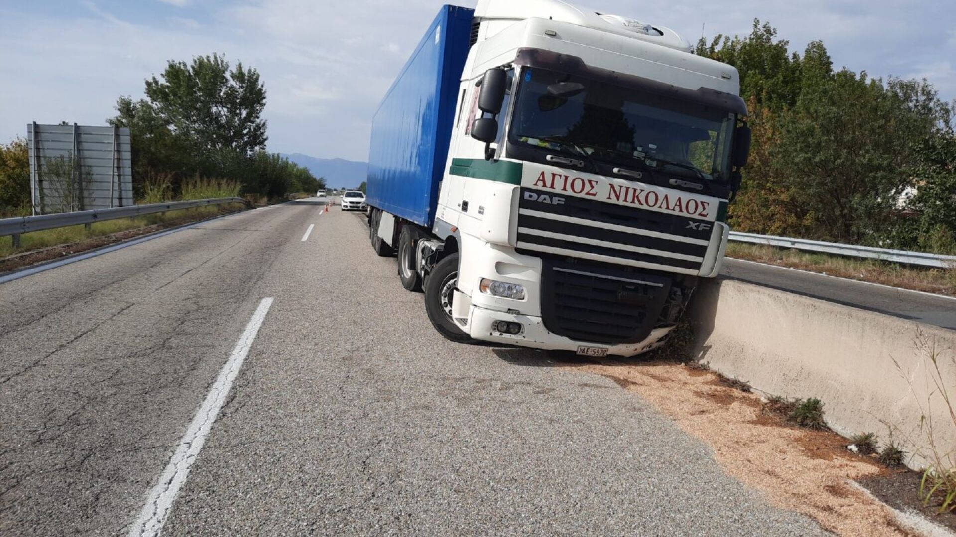 Επάνω στο τσιμεντένιο στηθαίο ασφαλείας κατέληξε μια νταλίκα το μεσημέρι του Σαββάτου στην Εθνική Σιδηροκάστρου-Σερρών και πιο συγκεκριμένα στο ύψος του Μελινικιτσίου