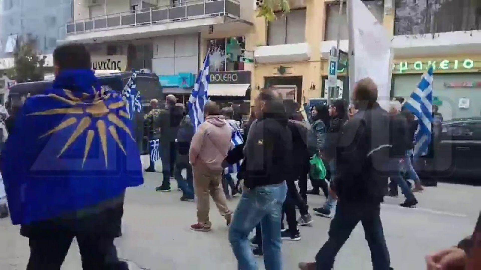 Μέλη αρκετών οργανώσεων από την Βόρεια Ελλάδα, διαμαρτύρονται φωνάζοντας συνθήματα κατά των μεταναστών, ζητώντας να σταματήσουν οι μετανάστες έρχονται στη χώρα μας.