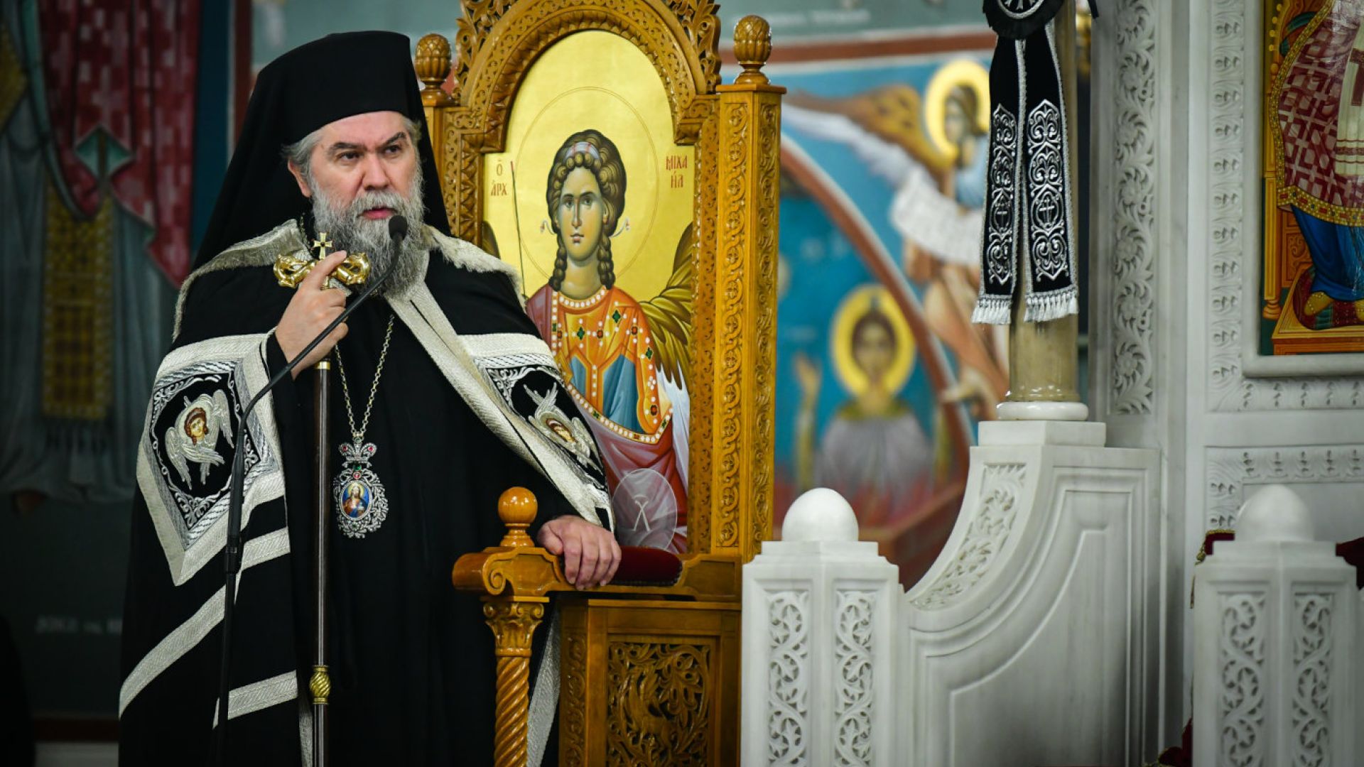Νωρίς το απόγευμα, είχαν τοποθετηθεί στο κέντρο του ιερού Μητροπολιτικού Ναού, η θαυματουργός βυζαντινή εικόνα του Κυρίου Παντοκράτορος, προερχομένη από το χωρίο των Στεφανινών της εκκλησιαστικής επαρχίας των Σερρών και χαριτόβρυτα αποτμήματα ιερών λειψάνων, προς προσκύνηση και πνευματική ενίσχυση του μεγάλου πλήθους πιστών, που είχε κυριολεκτικώς κατακλύσει τον Μητροπολιτικό Ναό των Σερρών.