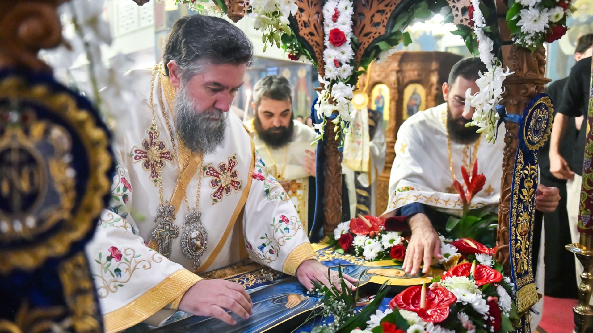 Η υπεραγία Θεοτόκος, το αμόλυντο κειμήλιο της παρθενίας, ο λογικός παράδεισος του δευτέρου Αδάμ, του Κυρίου Ιησού, το θεότευκτο εργαστήριο όπου ενώθηκαν ασυγχύτως, ατρέπτως και αδιαιρέτως οι δύο φύσεις Του, η θεία και η ανθρωπίνη, η μυστική Εκείνη κούφη νεφέλη που εβάστασε ακόπως Εκείνον που αναπαύεται επί των Χερουβίμ, μας εσύναξε απόψε πλησίον Της, για να λάβουμε κατά το μέτρο της πίστεώς μας από τον Κύριό μας, με την δική Της μεσιτεία, χάρη και έλεος, παρηγοριά και δύναμη, ενίσχυση και ελπίδα. Η αγία αειπάρθενος Κόρη και Μήτηρ προς τον υπέρ φύσιν Υιόν Της μεταβαίνουσα, υπέρ των κατά χάριν παιδιών Της, όλων μας δηλαδή, ακαταπαύστως πρεσβεύει. Η ‘’θυγάτηρ Ἀδάμ’’ και ‘’ἀδελφή ἡμῶν Μαρία’’, είναι το μοναδικό Εκείνο πρόσωπο στην ιστορία της ανθρωπότητος, που με αγιότητα βίου, αταλάντευτη πίστη, καθαρότητα σώματος και ψυχής, ταπείνωση, υπακοή, σεμνότητα, σιωπή, ελευθέρα βούληση, εβίωσε και υπηρέτησε το φοβερό και ακατάληπτο μυστήριο της θείας Οικονομίας, από το οποίο προέρχεται η αναγέννηση και η σωτηρία του ανθρωπίνου γένους. Η Παναγία μας είναι ό,τι αγιώτερο, ομορφότερο, ευγενέστερο και σεπτότερο καρποφόρησε το ανθρώπινο γένος και διά τούτο Εκείνη ως η όντως Κεχαριτωμένη αξιώθηκε να γίνει η αγία Μητέρα του Σωτήρος και Λυτρωτού του κόσμου, του Κυρίου μας Ιησού Χριστού.
