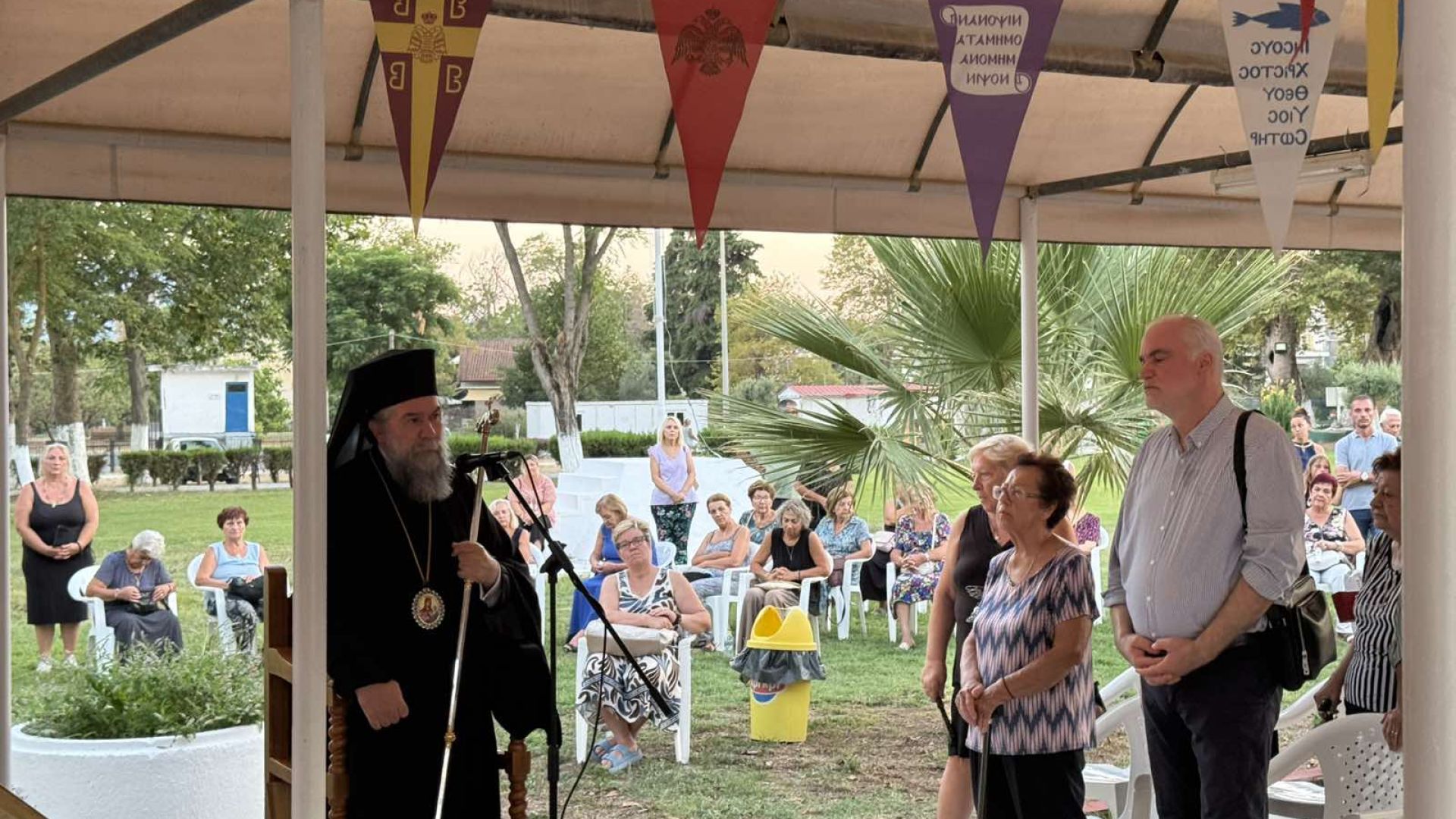 «Ευρισκόμενοι, με την χάρη του αγίου Θεού, είπε μεταξύ άλλων ο Σεβασμιώτατος, προ των θυρών του λειτουργικού εορτασμού της ευκλεούς μνήμης της ενδόξου Κοιμήσεως της υπερευλογημένης Θεοτόκου, της παρά πάσαν ανθρωπίνην λογικήν, χαρμοσύνου αυτής εορτής και παγκοσμίου πανηγύρεως, με ιερό θάμβος στεκόμεθα ενώπιον της ολόφωτης μορφής της Παναγίας και επιποθούμε με όση δύναμη έχουμε να υμνήσουμε Εκείνη, που είναι το πανάρρητον της οικονομίας κειμήλιον, το κάλλος της ανθρωπίνης φύσεως και το μεθόριον κτιστού και ακτίστου, καθώς επιχορηγεί με ελπίδα και δύναμη ολόκληρη την ζωή μας.