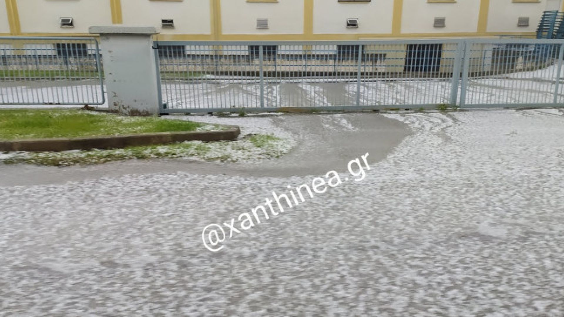 Οπως φαίνεται από το βίντεο από τον συνοικισμό Καλλιθέα στην Ξάνθη η χαλαζόπτωση ήταν τόσο σφοδρή που αυλές σπιτιών «ντύθηκαν» σε λευκά.