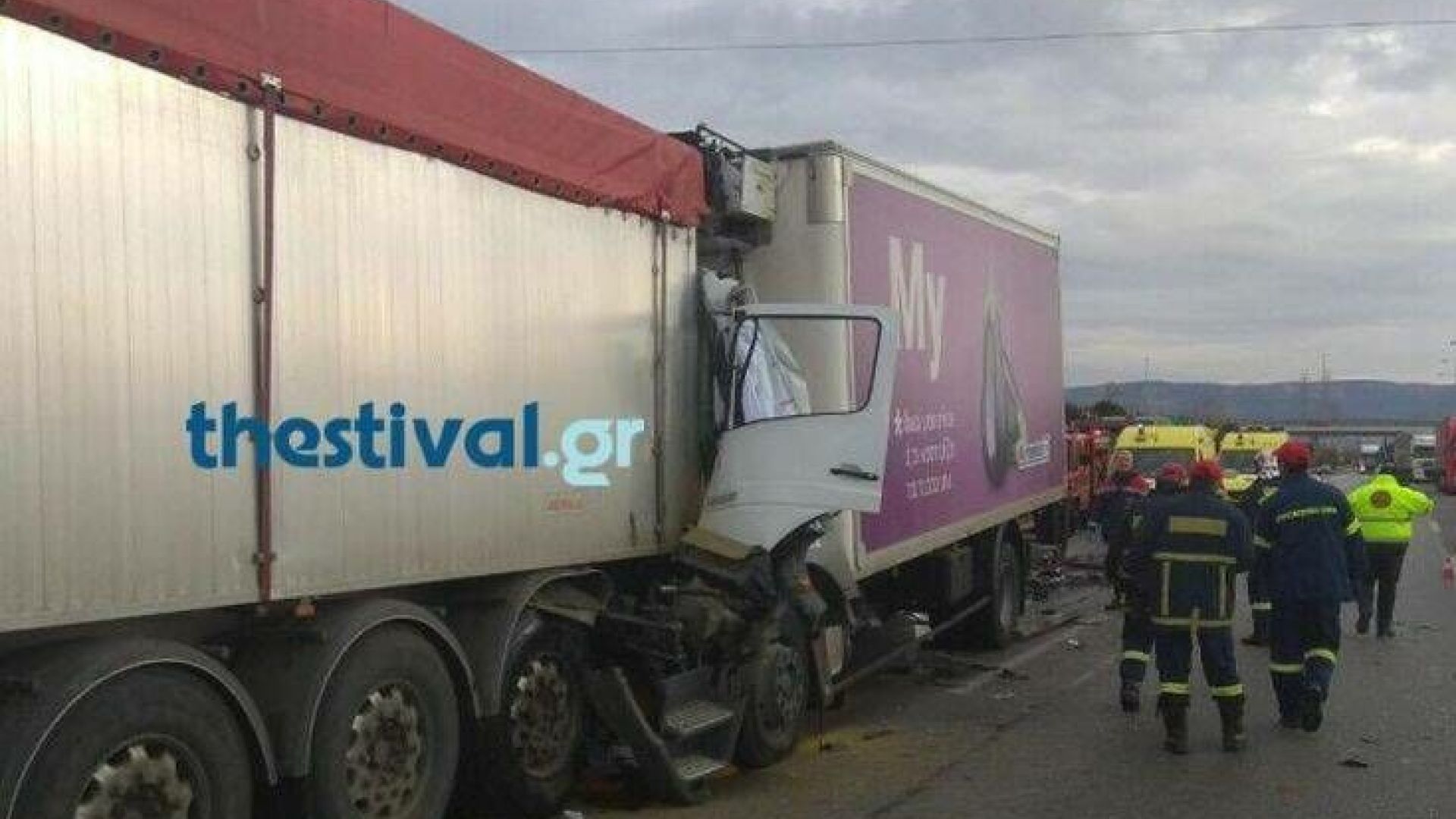 Σφοδρή σύγκρουση φορτηγών στη Θεσσαλονίκη: Εγκλωβίστηκε άντρας – Οι πρώτες εικόνες από το σημείο