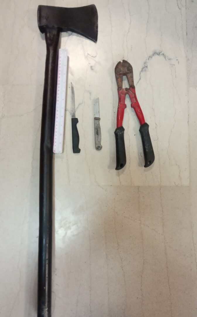 Κατασχέθηκε ένα όχημα που χρησιμοποιούσαν, μέσα στο οποίο βρέθηκαν επίσης και κατασχέθηκαν, ένα τσεκούρι, δύο μαχαίρια, ένας μεταλλικός κόφτης, καθώς και τα κλεμμένα πηνία και καλώδια.