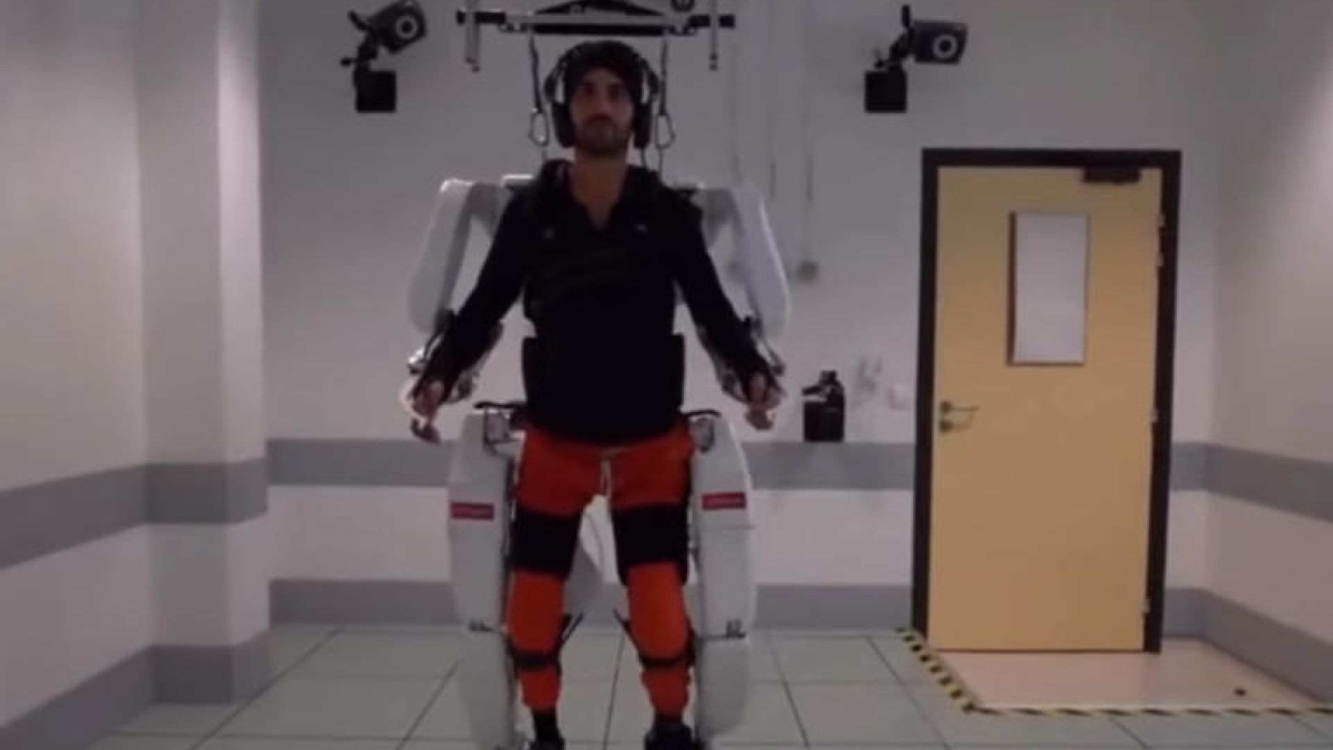 Ένας 28χρονος άνδρας, τελείως παράλυτος από τους ώμους και κάτω, ο οποίος είχε σπάσει το λαιμό του μετά την πτώση του από ύψος 14 μέτρων σε ένα νυχτερινό κλαμπ πριν τέσσερα χρόνια, μπόρεσε να περπατήσει ξανά φορώντας έναν ολόσωμο ρομποτικό εξωσκελετό, τον οποίο ελέγχει με τον νου του.