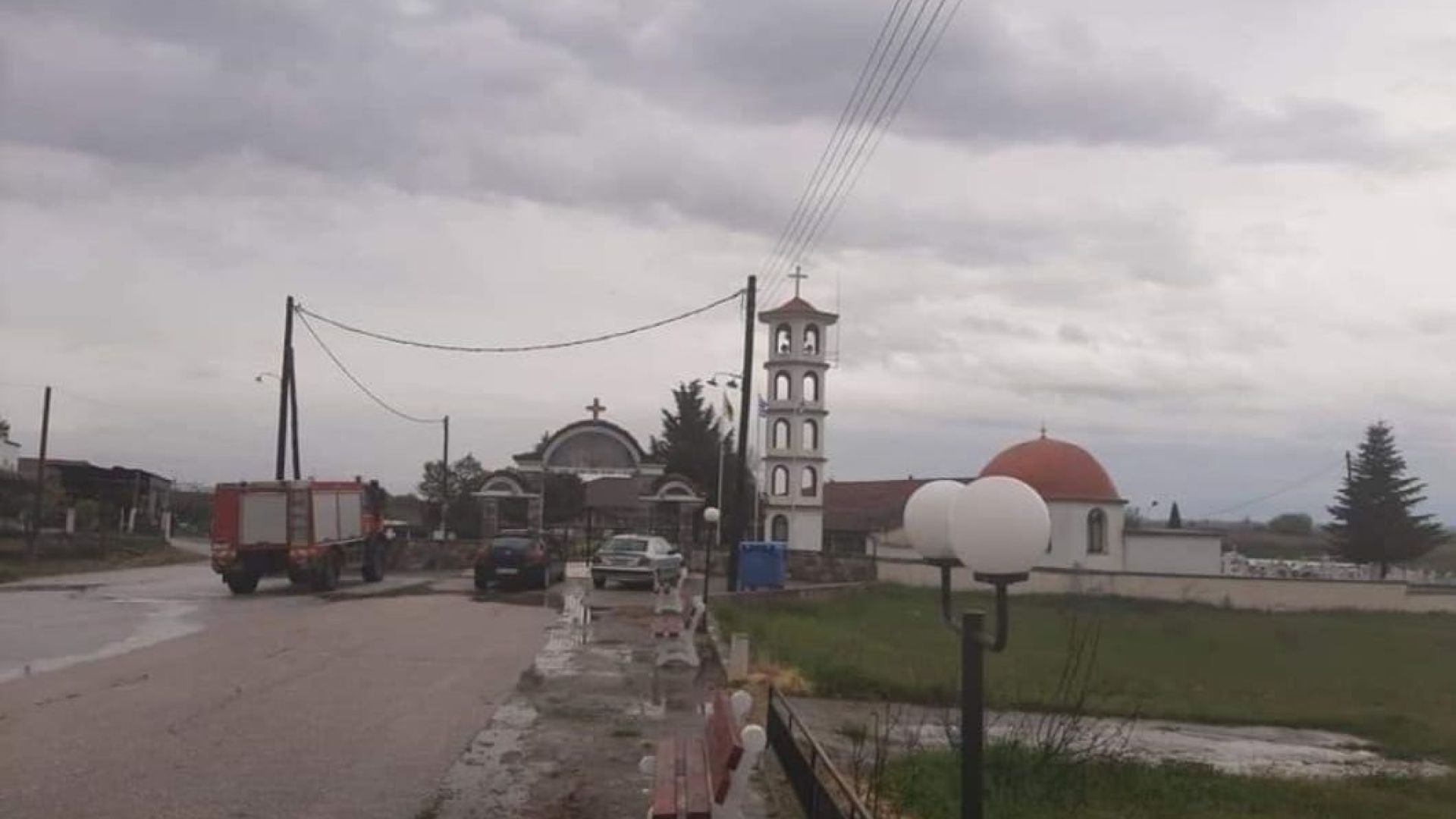 Μάλιστα, σύμφωνα με τη φωτογραφία που ανάρτησε στη σελίδα του στο facebook ο Πρόεδρος του Αχινού Ανέστης Κεμανιτζόγλου, αυτή την ώρα η πυροσβεστική αντλεί τα νερά από τον Ιερό Ναό.