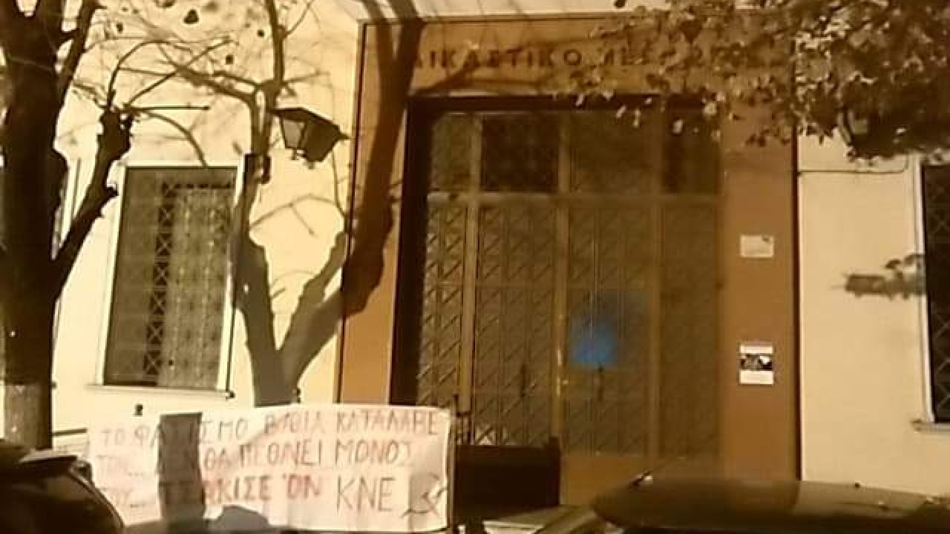Ένα πανό έκανε την εμφάνιση του έξω από το δικαστικό Μέγαρο των Σερρών, στο οποίο αναγράφεται “Το φασισμό βαθιά κατάλαβε τον…Δεν θα πεθάνει μόνος του… Τσάκισέ τον. ΚΝΕ”.