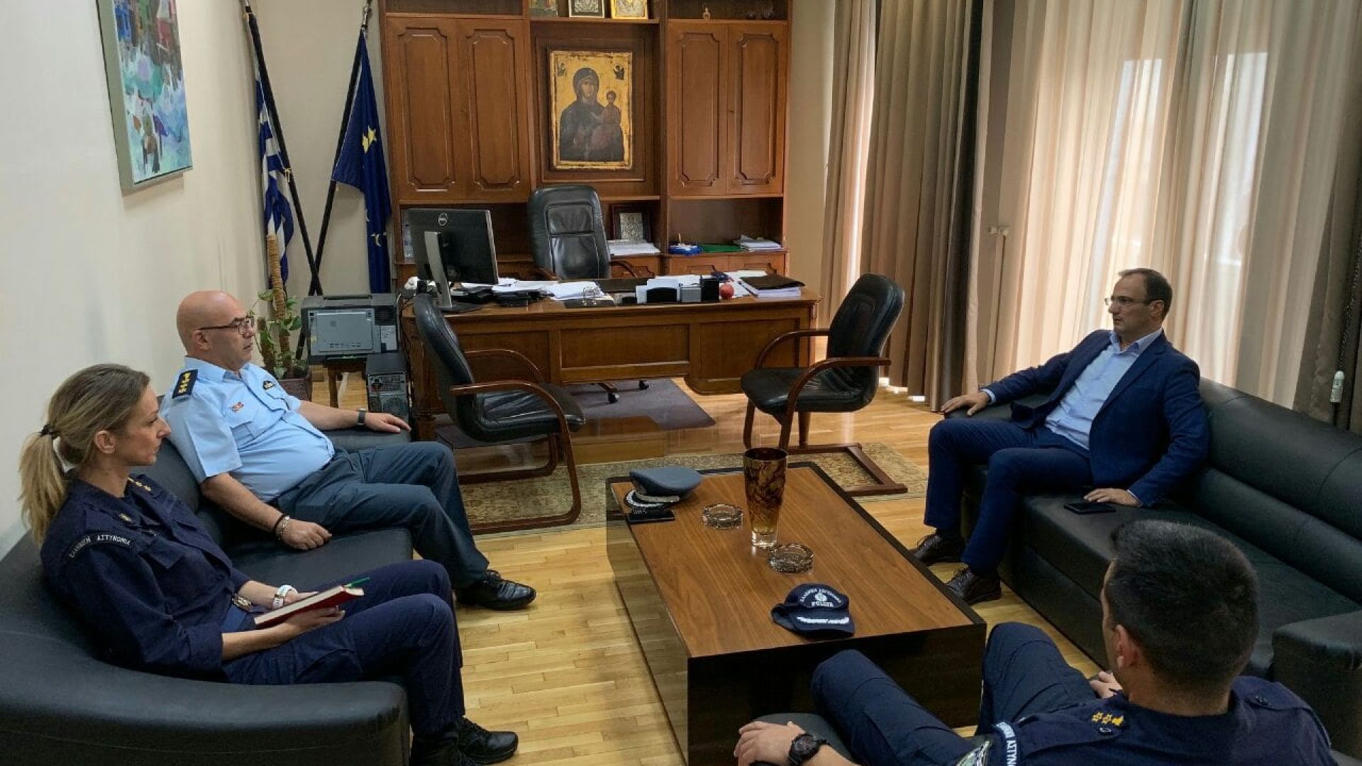 Στη συνάντηση, η οποία είχε εθιμοτυπικό χαρακτήρα, συμμετείχαν ο Αστυνομικός Διευθυντής Σερρών, Δημήτρης Μικρός, ο Διοικητής του Αστυνομικού Τμήματος Σερρών, Αλέξανδρος Καραγιαννίδης, και η Διοικήτρια της Τροχαίας Σερρών, Δούμα Ευαγγελία.