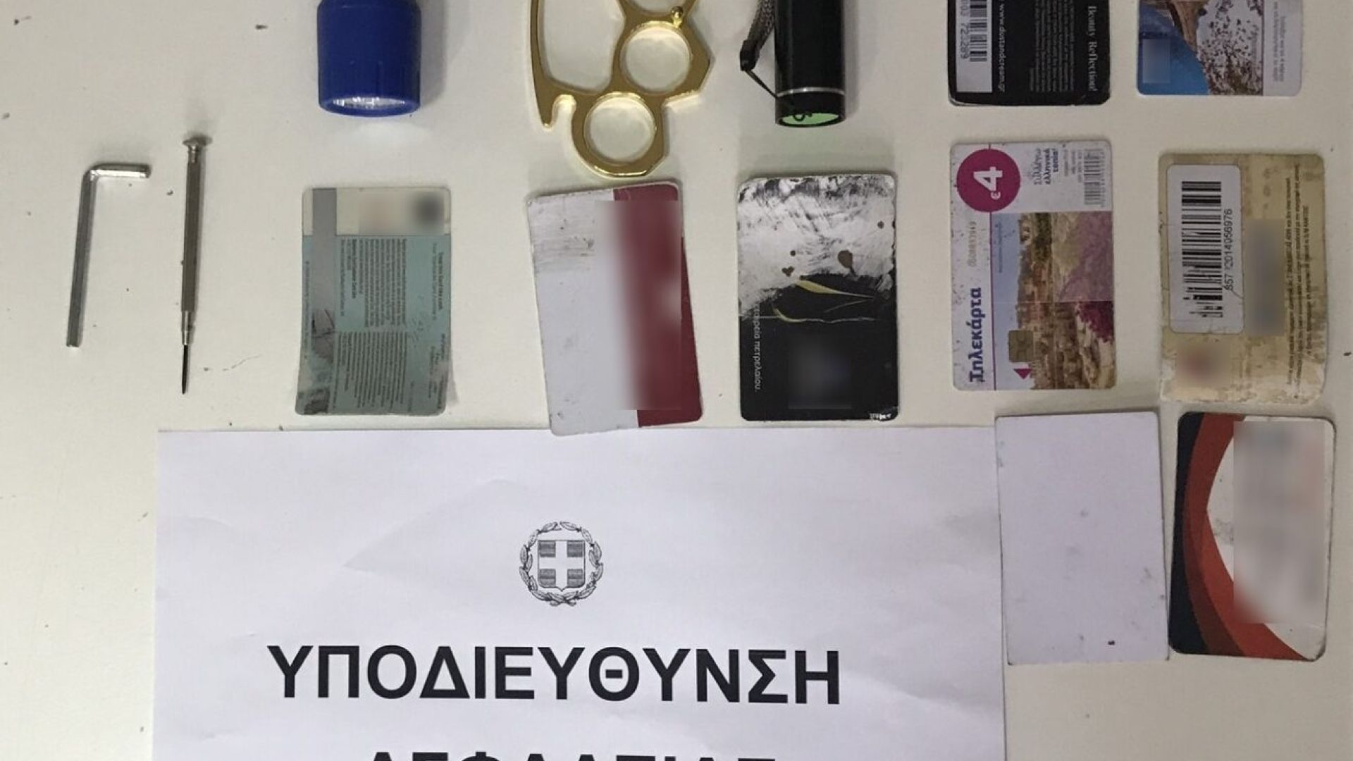 Η άμεση κινητοποίηση των αστυνομικών είχε ως αποτέλεσμα να εντοπιστεί λίγη ώρα αργότερα, στην κατοχή του οποίου βρέθηκαν διάφορα διαρρηκτικά εργαλεία και μία μεταλλική σιδερογροθιά, τα οποία και κατασχέθηκαν.