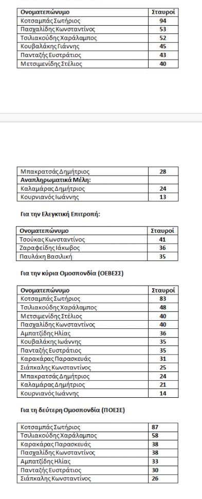 Παρατίθενται τα αποτελέσματα των εκλογών κατά σειρά ψήφων: