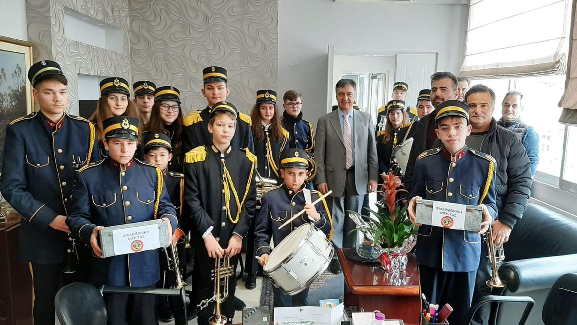 Κάλαντα και Χριστουγεννιάτικες μελωδίες ακούστηκαν την παραμονή των Χριστουγέννων στο γραφείο του Δημάρχου Βισαλτίας, Αθανάσιου Μασλαρινού.