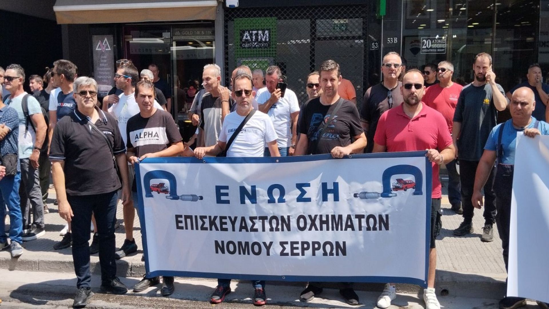 Ανάμεσά τους και Σερραίοι Επισκευαστές οχημάτων και Φανοποιοί που έδωσαν το παρών στη συγκέντρωση, διεκδικώντας την απόσυρση της σχετικής ρύθμισης.