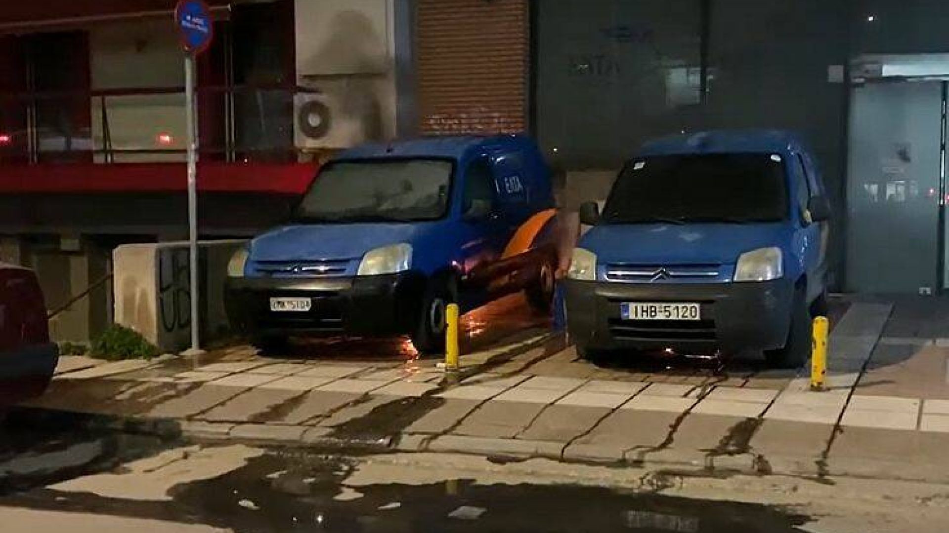 Δύο δράστες τοποθέτησαν πλάκες παραφίνης στα ελαστικά των οχημάτων. Προκλήθηκε φωτιά με αποτέλεσμα τα δύο οχήματα να υποστούν φθορές.