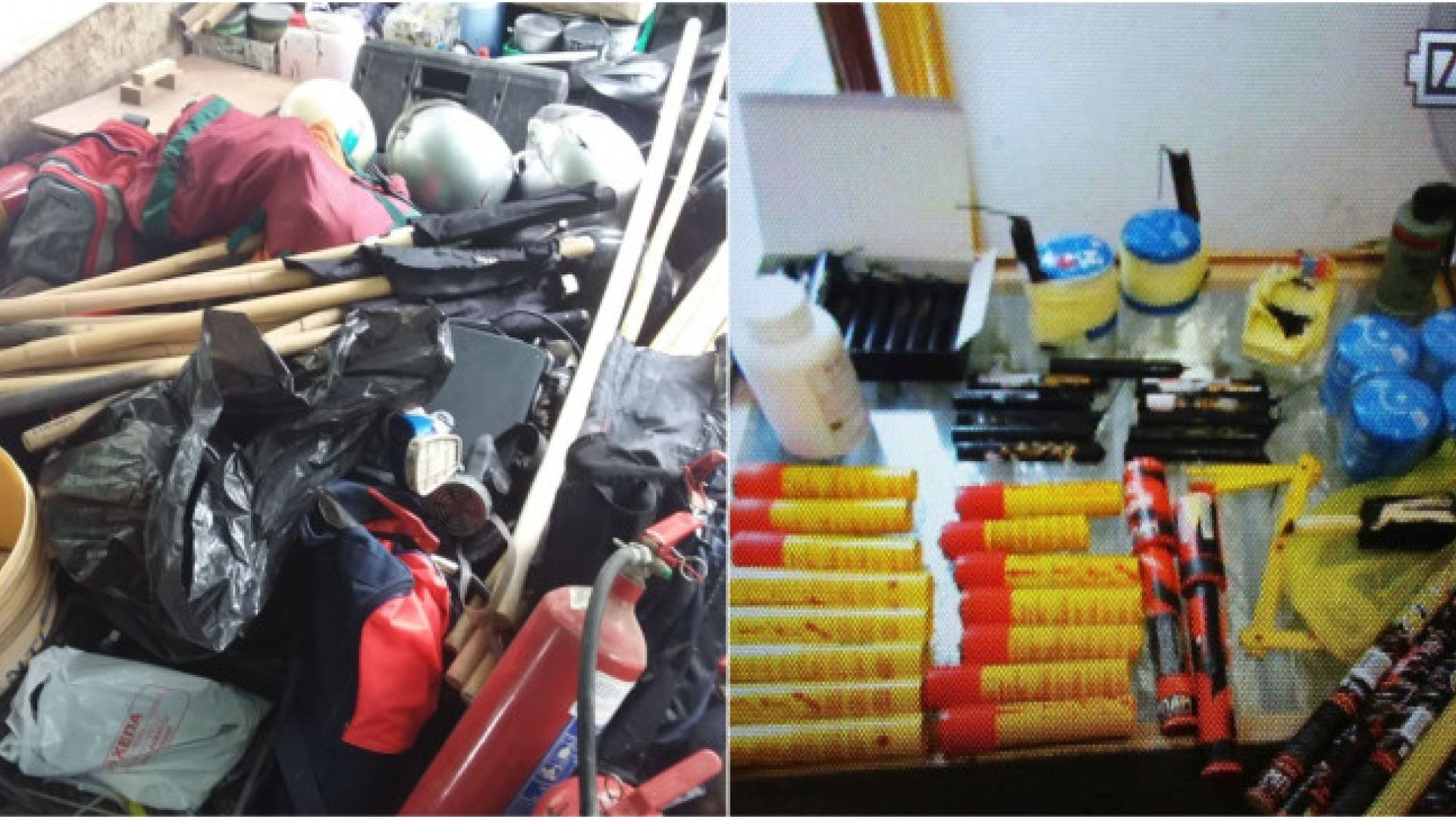 Αυτοσχέδιους εκρηκτικούς μηχανισμούς, γκαζάκια τυλιγμένα με φιτίλια, πλάκες παραφίνης, κράνη, πυροσβεστήρες και αντιασφυξιογόνες μάσκες είναι μερικά από τα υλικά που βρέθηκαν και κατασχέθηκαν από την ΕΛ.ΑΣ. στην επιχείρηση εκκένωσης κτιρίου στη Θεσσαλονίκη, που τελούσε υπό κατάληψη (Terra Incognita) από τον Φεβρουάριο του 2004.