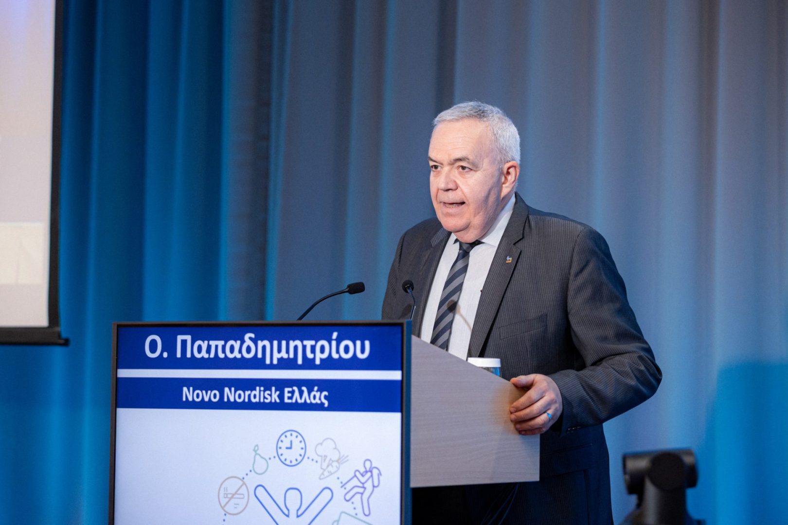 Για τα επιστημονικά επιτεύγματα των νέων ενέσιμων φαρμάκων στην αντιμετώπιση του σακχαρώδους διαβήτη και της παχυσαρκίας,  μίλησε ο κ. Ολύμπιος Παπαδημητρίου, Γενικός Διευθυντής Novo Nordisk Ελλάς.