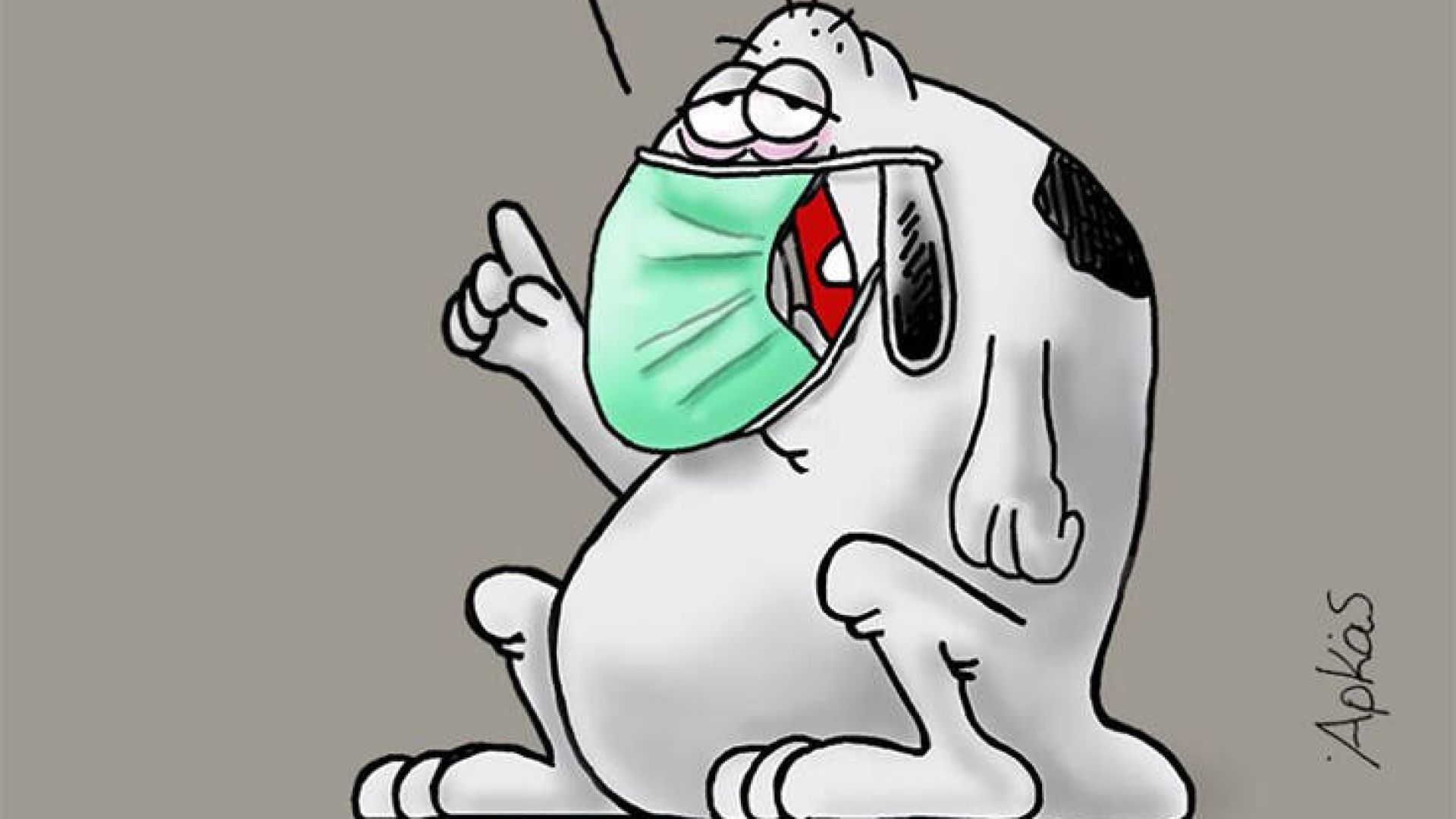 Στο νέο σκίτσο πρωταγωνιστεί ένας από τους σκύλους-ήρωες του Αρκά ο οποίος φοράει μάσκα και προκειμένου να ευχηθεί «καλημέρα» τονίζει: