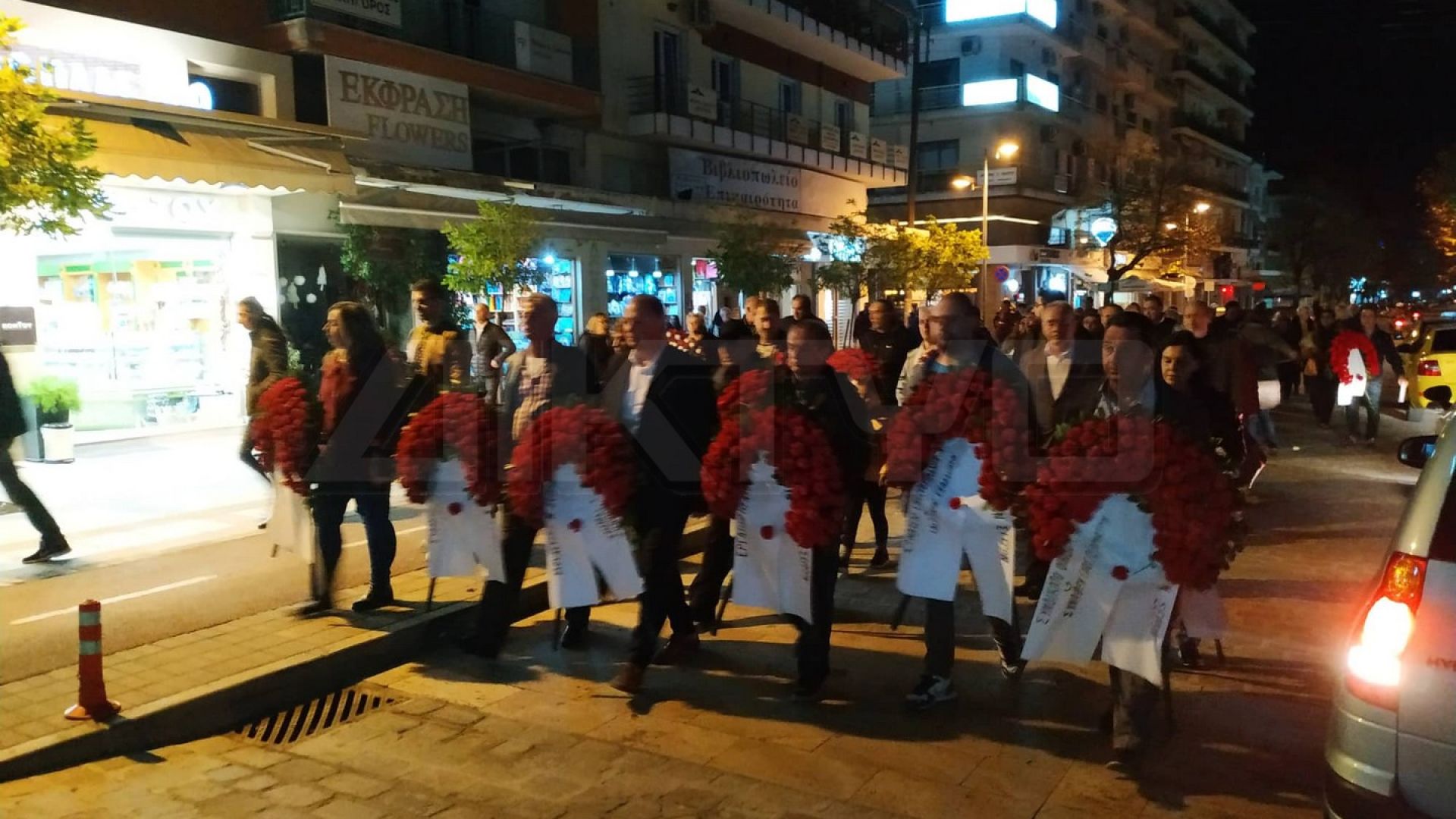 Μέλη της ΑΔΕΔΥ και του εργατικού Κέντρου, συγκεντρώθηκαν γύρω στις 6 το απόγευμα έξω από τα γραφεία του εργατικού Κέντρου, Μέλη του ΚΚΕ και της ΚΝΕ στην πλατεία Kρονίου, αλλά και μέλη του ΑΝΤΑΡΣΥΑ, για να πραγματοποιήσουν 3 διαφορετικές πορείες, αλλά και κατάθεση στεφάνων στο μνημείο της Εθνικής αντίστασης στην πλατεία εμπορίου.