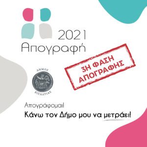 Συγκεκριμένα όσοι κάτοικοι του δήμου μας δεν κατάφεραν να απογραφούν, είτε ηλεκτρονικά, είτε κατά την επίσκεψη του απογραφέα στις οικίες τους, έχουν τη δυνατότητα, να απογραφούν τις επόμενες ημέρες. Συγκεκριμένα απογραφέας θα βρίσκεται: