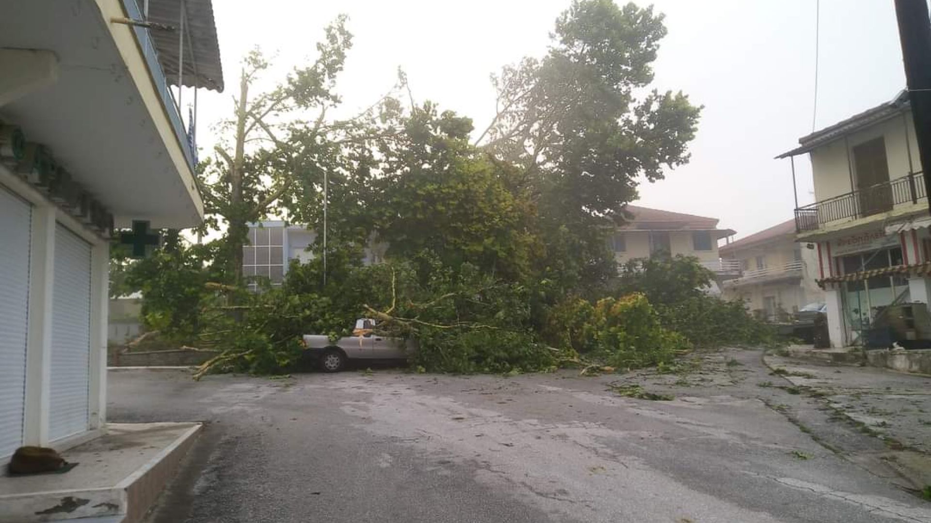 Οι κάτοικοι του χωριού από το πρωί να κόβουν δέντρα για να ανοίξουν δρόμους και να καθαρίζουν υπόγεια που γέμισαν από τα νερά της βροχής.