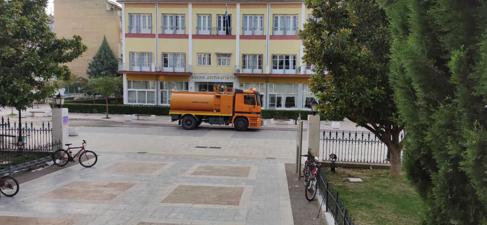 Ξεκίνησαν οι απολυμάνσεις δρόμων και κοινοχρήστων χορών από το Δήμο Σερρών. Από νωρίς το πρωί συνεργεία της υπηρεσίας καθαριότητας βρισκόταν στο δρόμο και προσπαθούσαν να όποιο σημείο ήταν εφικτό.