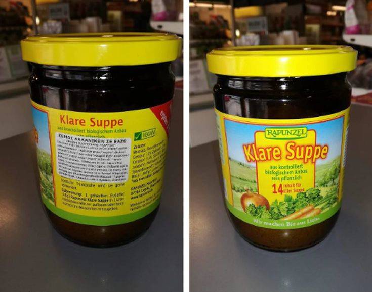 Συγκεκριμένα, ο ΕΦΕΤ ενημερώθηκε, για τη διακίνηση ζωμού λαχανικών σε σκόνη, το οποίο ενδέχεται να περιέχει ξένο σώμα (θραύσματα γυαλιού). Συγκεκριμένα, πρόκειται για το προϊόν «Klare Suppe» με εμπορική ονομασία «Rapunzel», γερμανικής προέλευσης, σε γυάλινο βάζο των 250 γρ., με αριθμό γραμμοκώδικα ΕΑΝ 4006040271017 και ημερομηνία ανάλωσης κατά προτίμηση πριν από 18.09.2020.